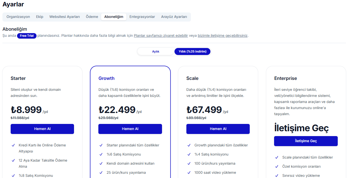 Planlar hakkında detaylı bilgi almak için Planlar sayfasını ziyaret edebilir veya ekibimizle iletişime geçebilirsiniz.