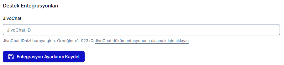 Web sitenizdeki tüm iletişim kanallarını tek bir panelden yönetmek ve ziyaretçilerinizin anında, kesintisiz ve profesyonel destek almasını sağlamak için JivoChat canlı destek sistemini kullanabilirsiniz. JivoChat entegrasyonu hakkında detaylı bilgi almak ve kurulumu öğrenmek için JivoChat Entegrasyonu sayfasını ziyaret edebilirsiniz.