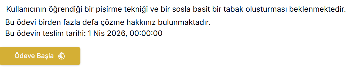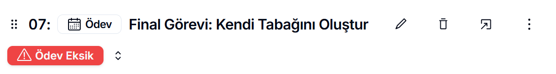 Bu panelde ödev oluşturulduktan sonra, bölümün altında yeni içeriğinizi görebilirsiniz. Ancak henüz bir açıklama girilmediği için ödev bu haliyle eksik olacak ve fotoğrafta görüldüğü üzere “Ödev Eksik” uyarısı ile karşılaşacaksınız.