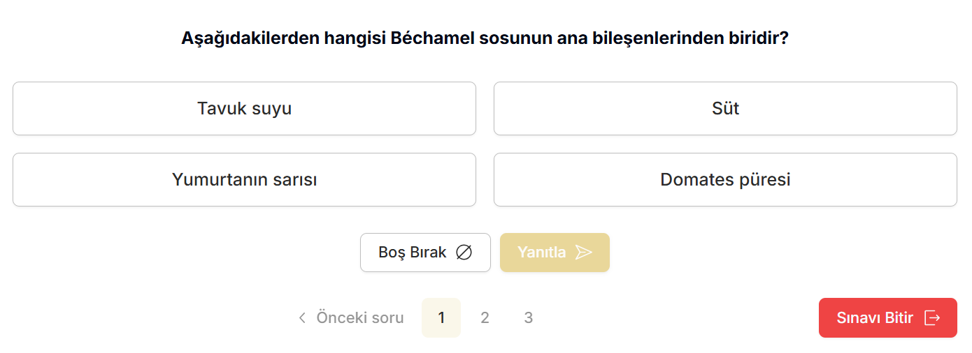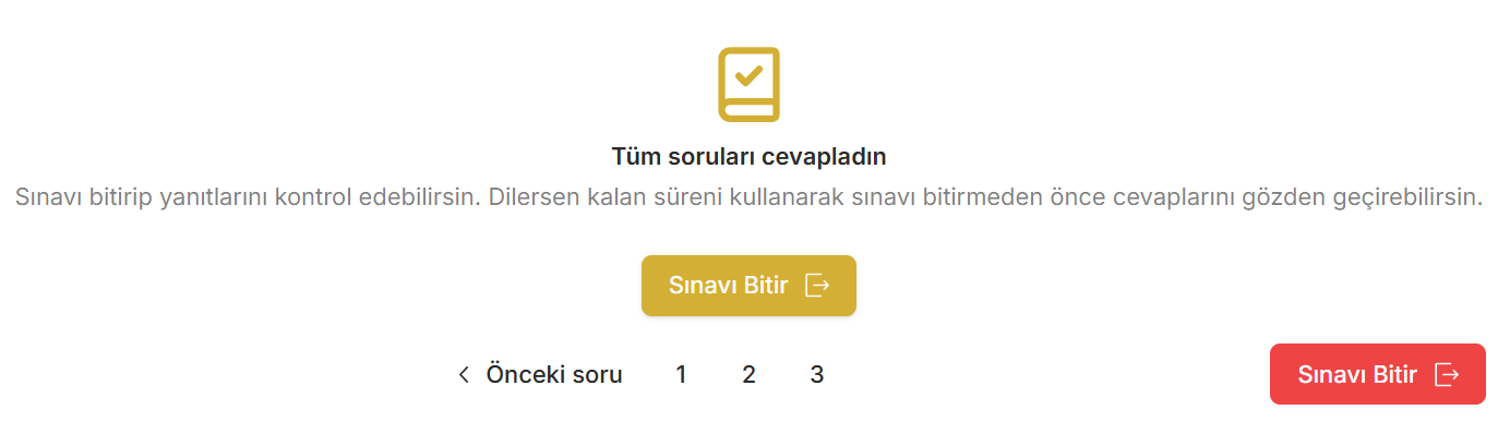 Sınav deneyimini görmek için bir öğrenci hesabıyla giriş yapmanız gerekmektedir. Bunu yapmak için tercih ettiğiniz bir e-posta adresini dersinize ücretsiz olarak ekleyebilirsiniz. :::