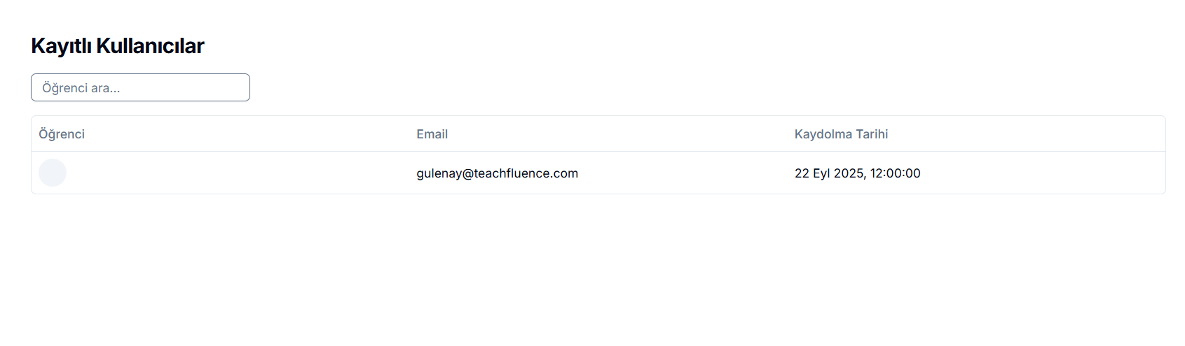 Yönetici panelinize giriş yaptıktan sonra sol menüde yer alan “Kullanıcılar” sekmesinden, tüm kurslarınıza kayıtlı öğrencileri toplu şekilde görüntüleyebilirsiniz.
