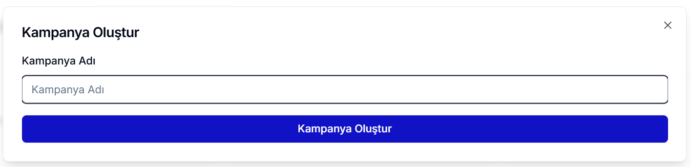Yeni bir kampanya başlatmak için Kampanya Oluştur butonuna tıklayın ve kampanya adını belirleyerek oluşturma sürecine başlayın.