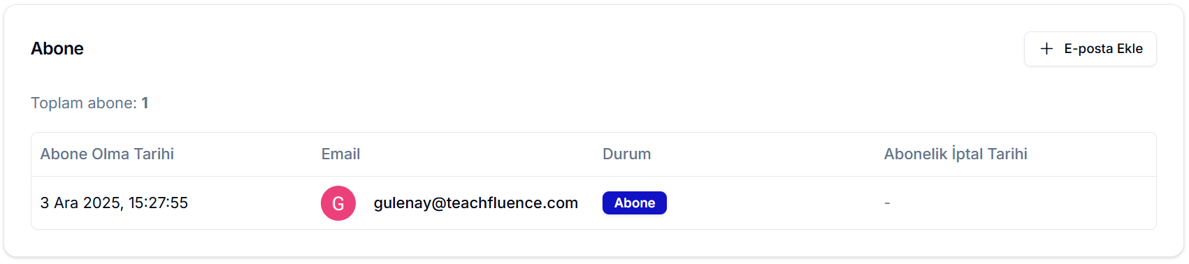Bir listenin abonelerini yönetmek için ilgili listeyi açıp E-posta Ekle butonunu kullanabilirsiniz.