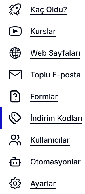 Teachfluence hesab ınıza giriş yaptıktan sonra sol menüde yer alan İndirim Kodları bölümüne tıklayarak indirim kodları paneline ulaşabilirsiniz.